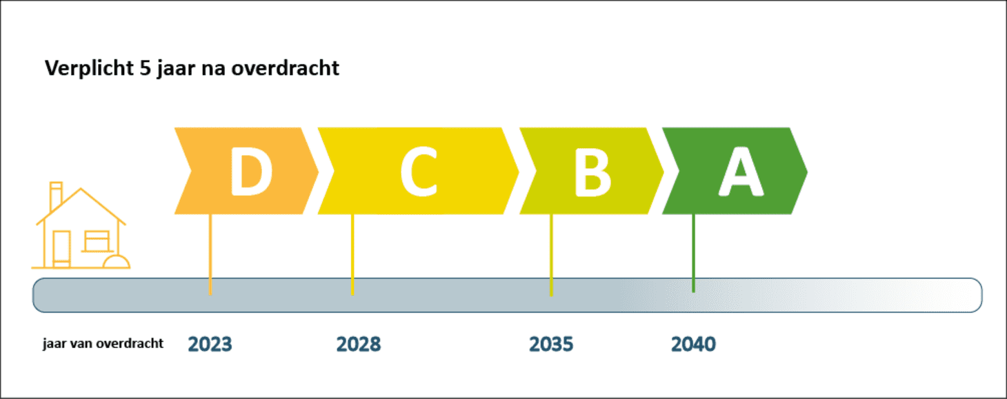 Een volledige omvorming van alle woningen naar label A wordt beoogd tegen 2040: