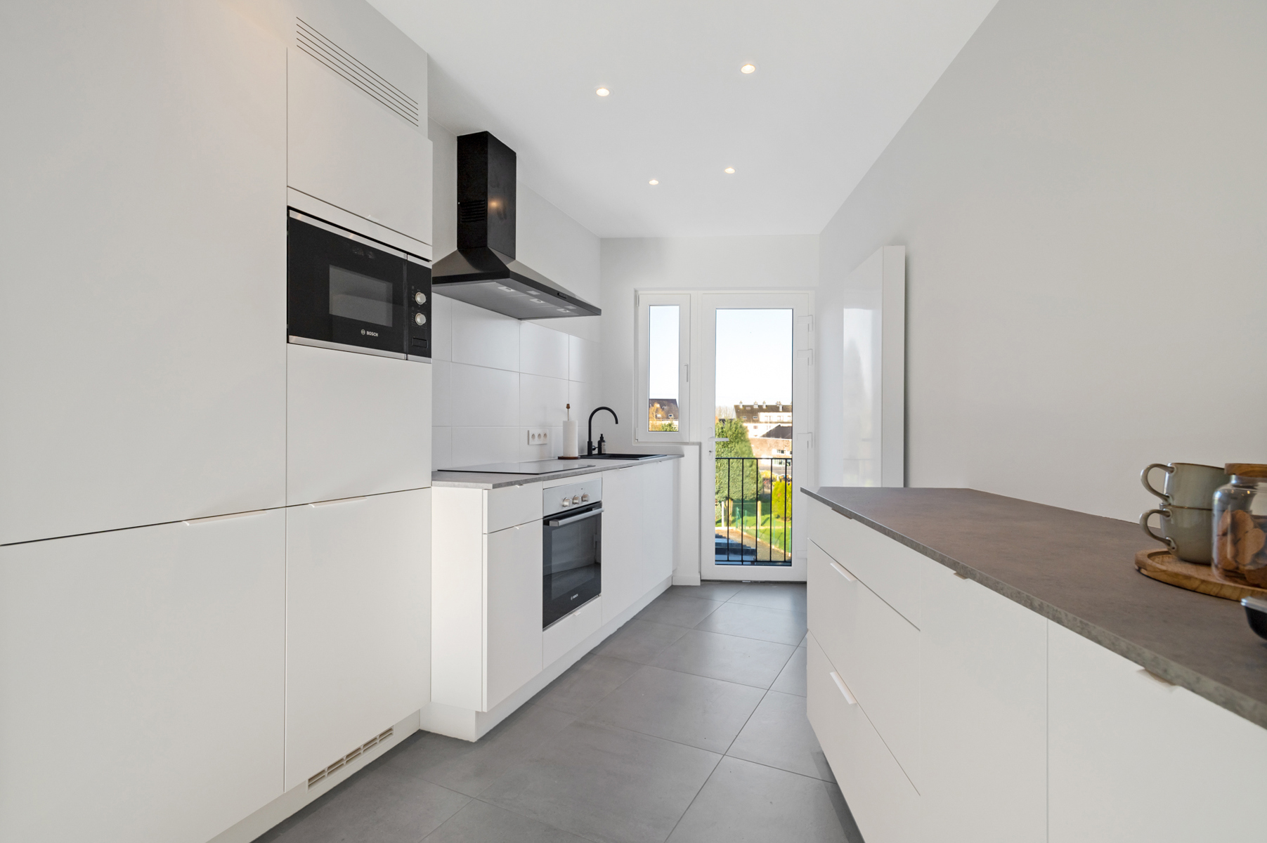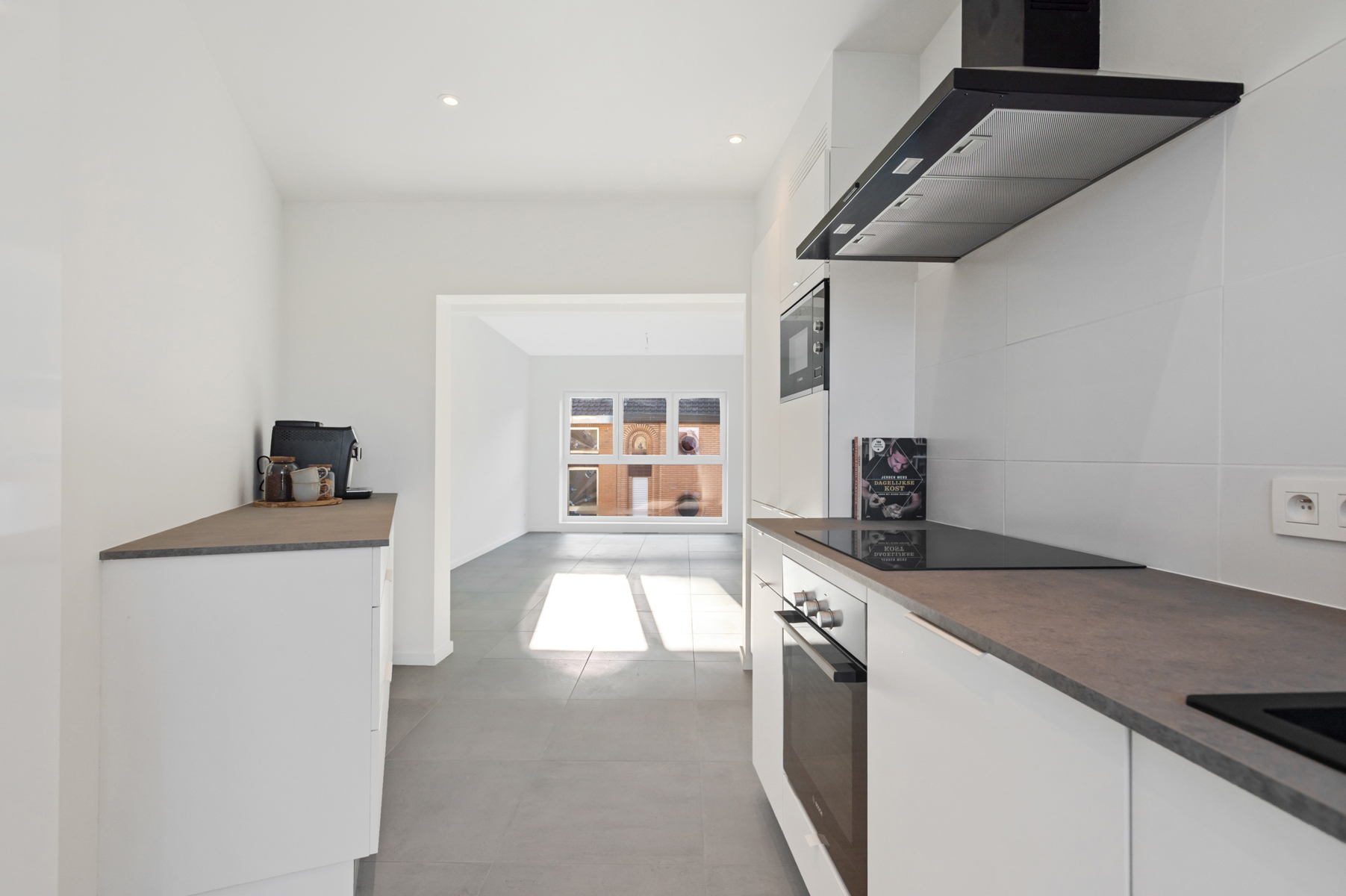 Appartement entièrement rénové dans un petit immeuble, situé dans le centre de Merchtem. L'appartement a été entièrement rénové et fini avec des matériaux de haute qualité. De nombreux commerces, écoles, voies d'accès et transports publics se trouvent à deux pas de l'appartement. L'appartement se trouve au premier étage. L'appartement se compose d'un hall d'entrée, d'un séjour lumineux avec cuisine ouverte équipée de tous les appareils nécessaires, d'un balcon attenant. Le hall de nuit donne accès à une salle de bain équipée, des toilettes, 1 chambre et 1 bureau. L'appartement dispose d'un garage et d'une cave. Les charges sont €50 par mois.