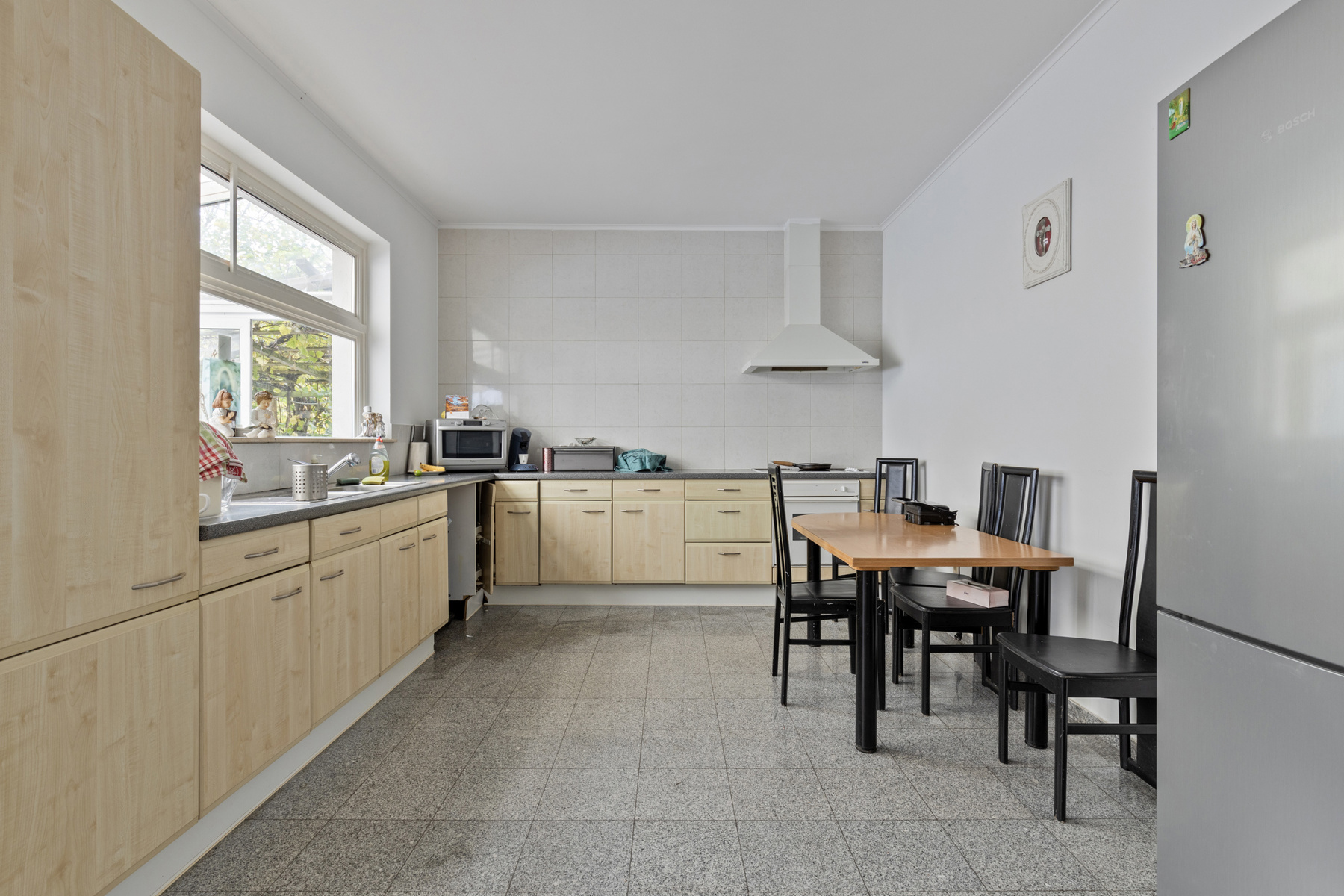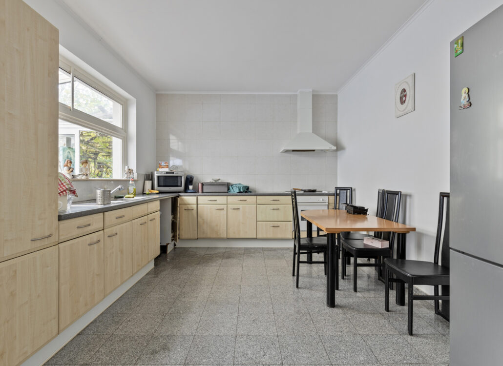 La cuisine spacieuse est aménagée de manière pratique et dispose d’un coin repas.