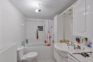 La maison comprend également quatre chambres confortables, une salle de bain avec baignoire, une salle de douche séparée, ainsi qu’un garage.