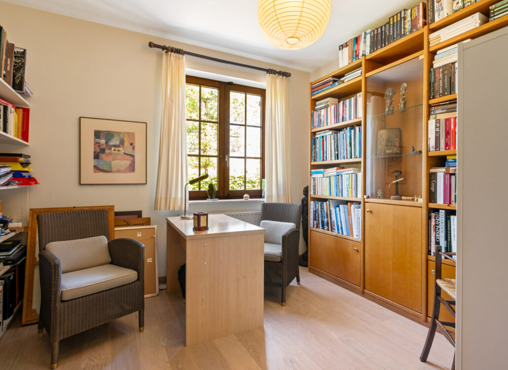 Op de verdieping bevinden zich vier volwaardige slaapkamers, een badkamer, een aparte douchekamer, en via een trap bereikt u de stockagezolder – ideaal voor extra opbergruimte. De woning is bovendien volledig onderkelderd met een kelderruimte van 190 m², die talloze mogelijkheden biedt.