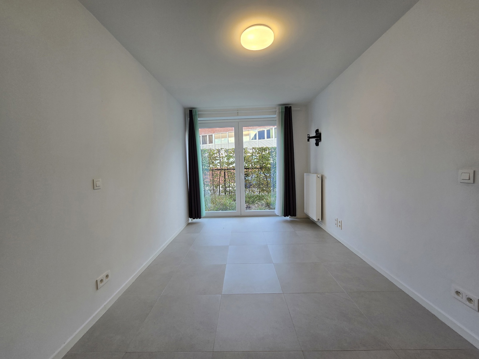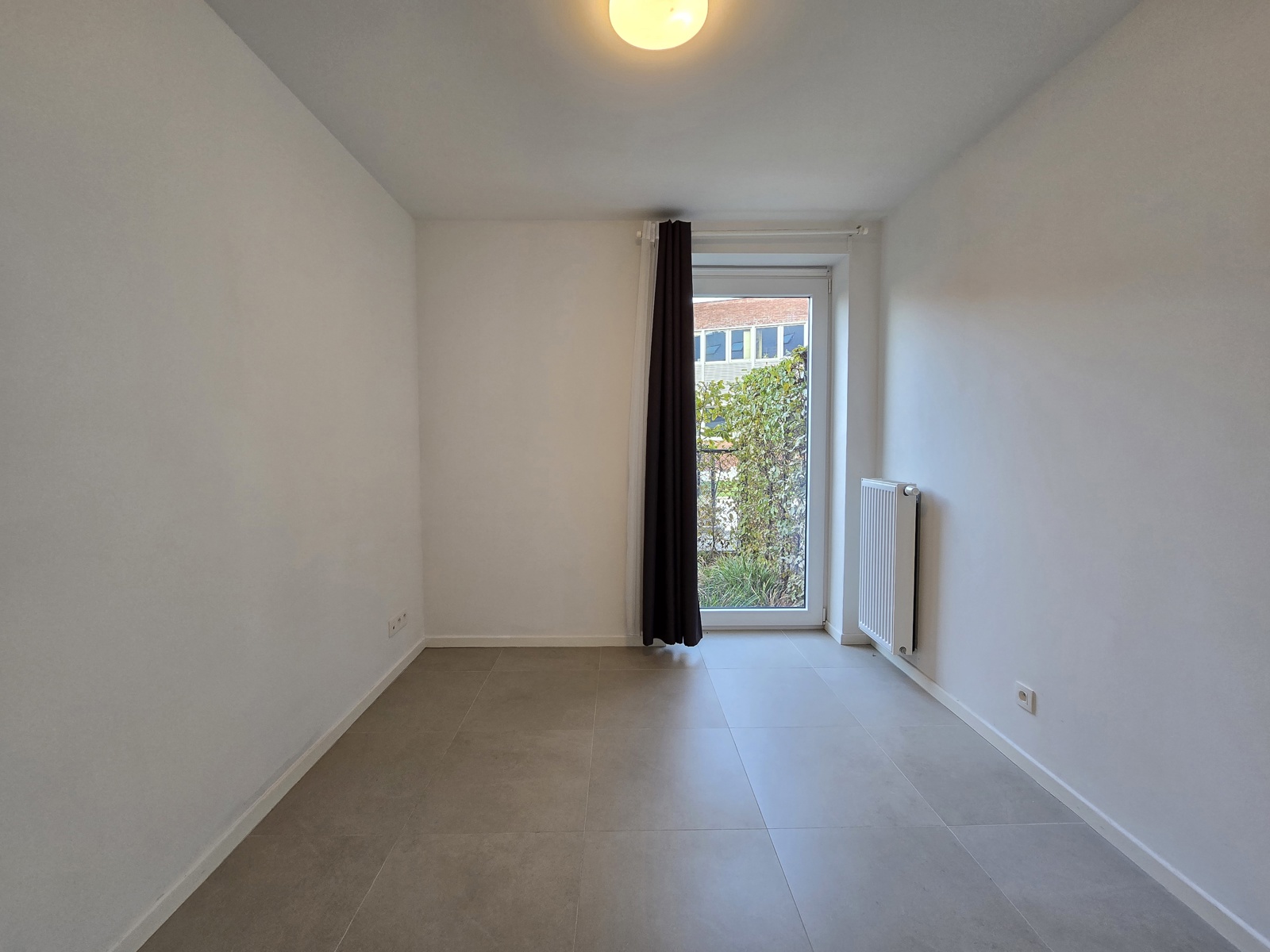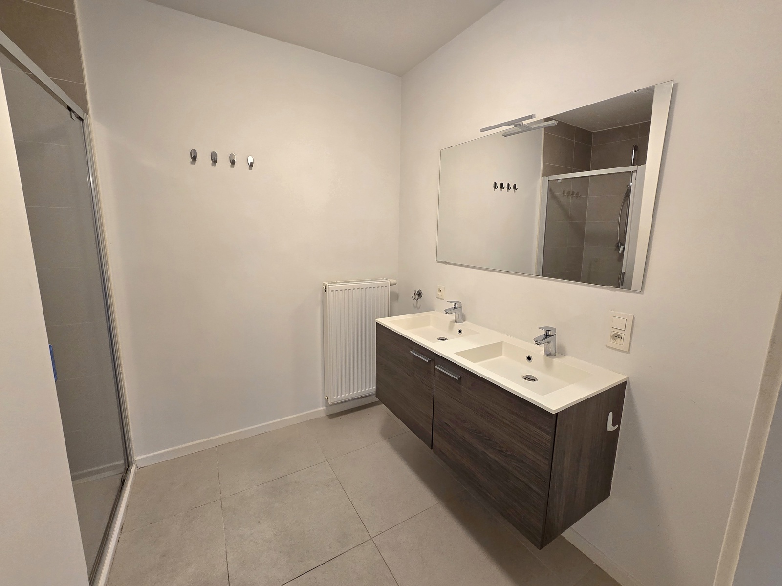 Gelijkvloersappartement met tuin te huur in het centrum van Wolvertem. Dit 2-kamer appartement op het gelijkvloers bestaat uit een ruime eet + leefruimte met open keuken (volledig uitgerust) en toegang naar het terras, aparte wc, badkamer met wastafel in meubel, douche en 2 slaapkamers. Voor elk appartement is er een autostaanplaats en een kelder voorzien in de ondergrondse garage. Lasten 125€. Uitstekende verbinding A12- Brussel-Ring!